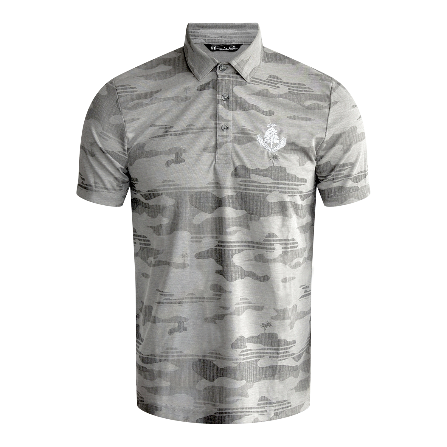 Our TravisMathew pattern polo in heather grey features our Carnoustie Golf Links logo on the left chest, this classic fit polo is made from TravisMathew's eco fabrication consisting of 56% pima cotton and 44% recycled polyester