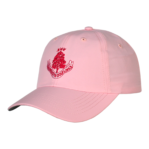 Our Imperial small fit performance baseball cap in light pink features our Carnoustie Golf Links logo. This cap is small fit with an adjustable strap for comfort. Made from a performance, polyester fabric this cap is moisture wicking and breathable.