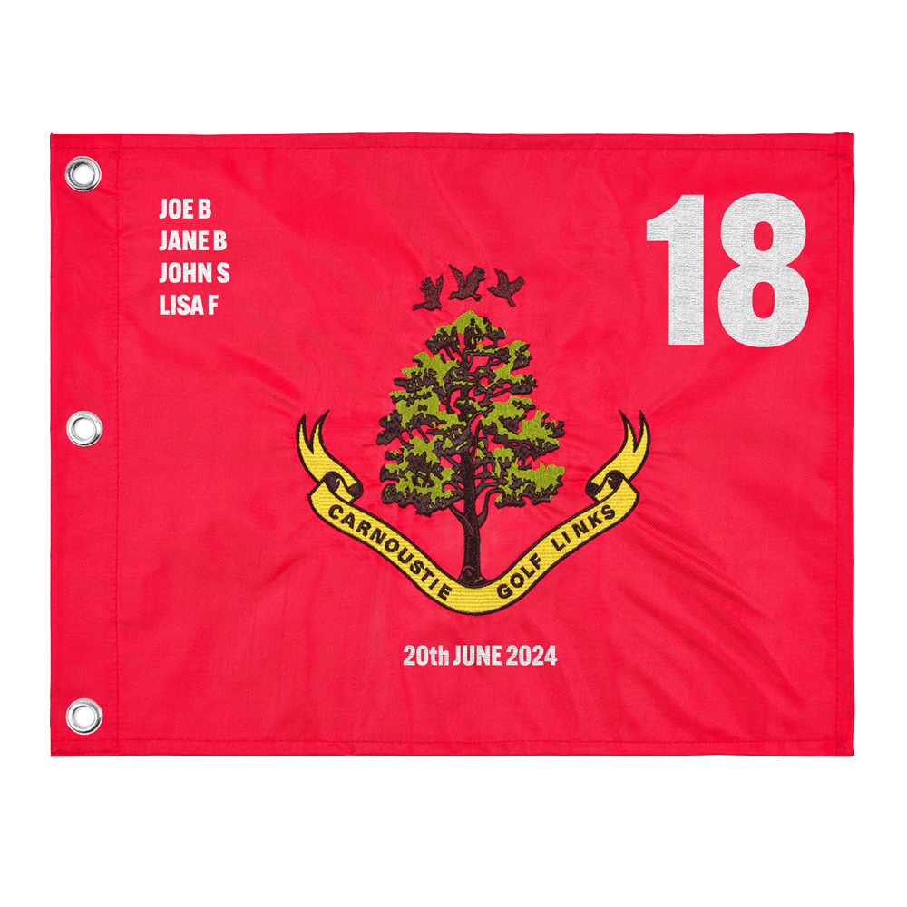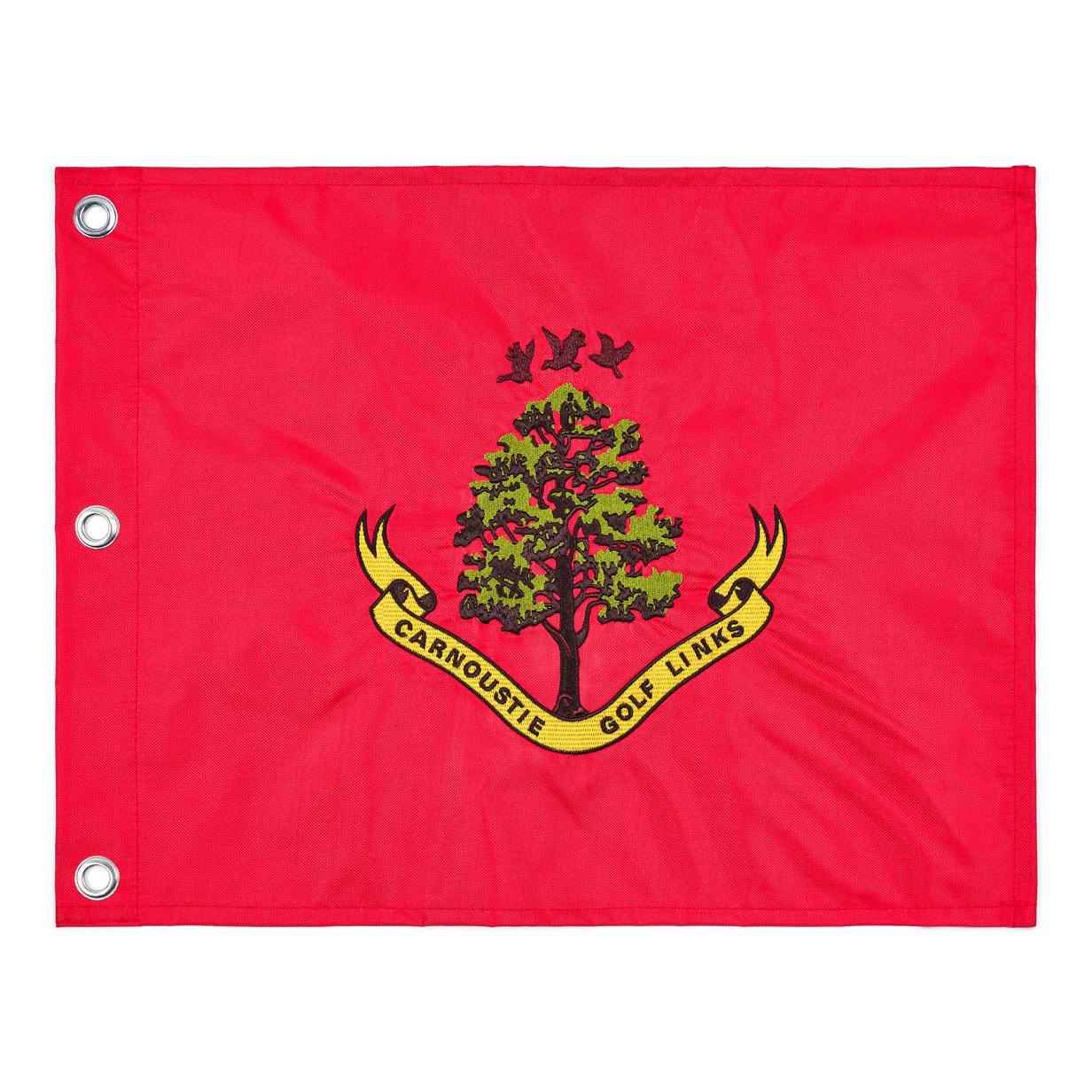 Our Carnoustie Golf Links pin flag in red matches the back 9 hole pin flags on our Championship Course.