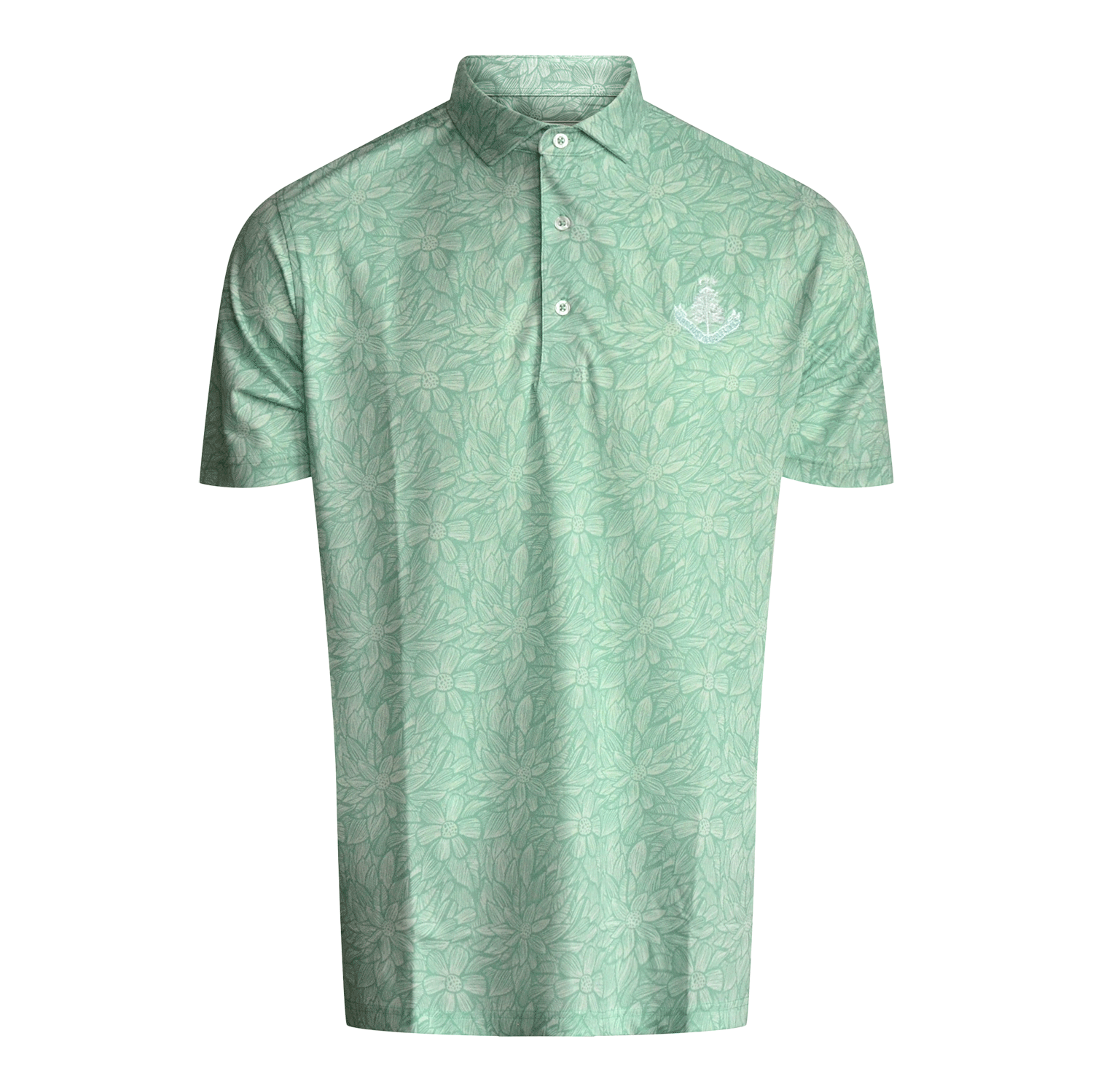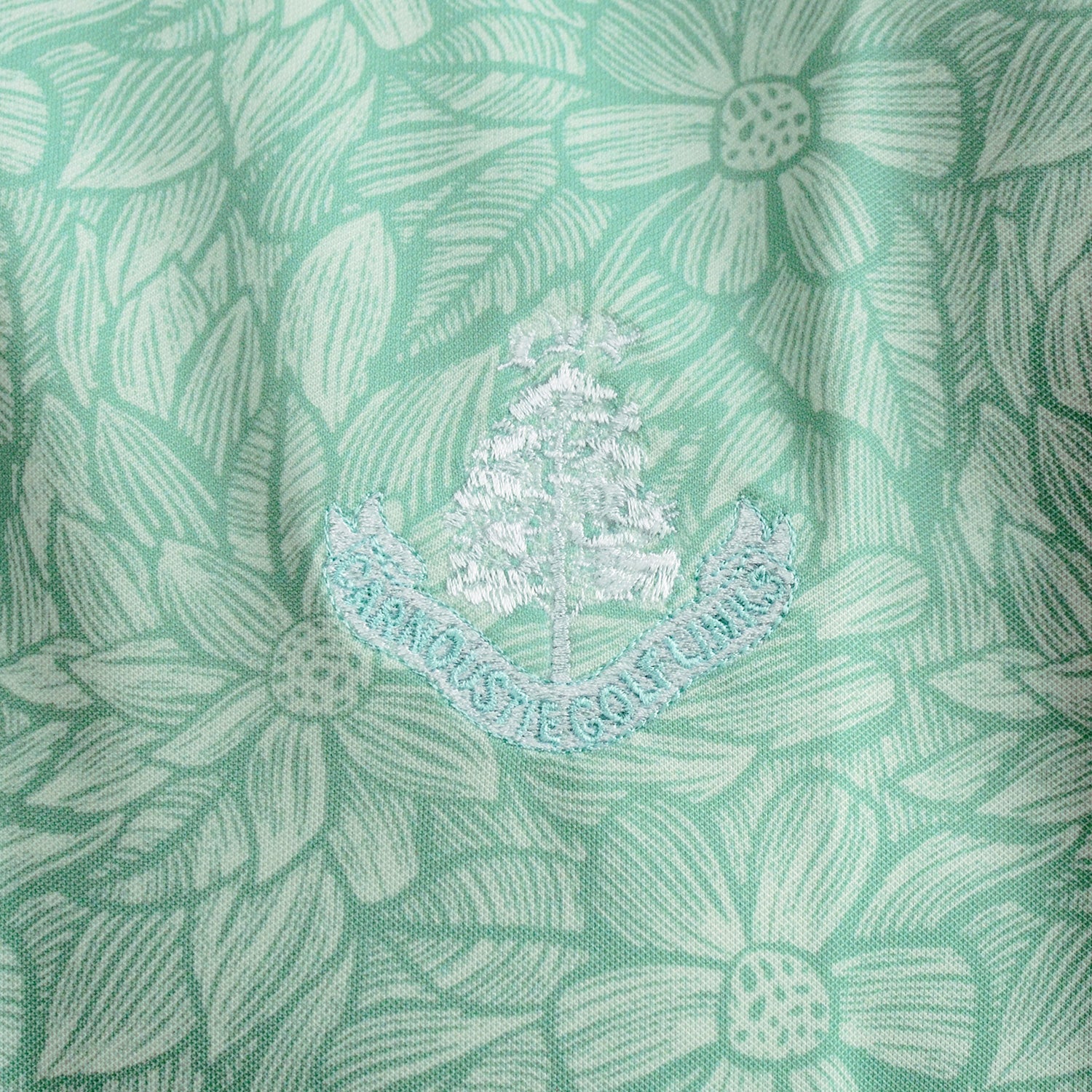 Our Donald Ross Classic pattern performance polo in mint features our Carnoustie Golf Links logo on the left chest. This performance polo offers UPF50 sun protection. Made from 91% polyester and 9% spandex