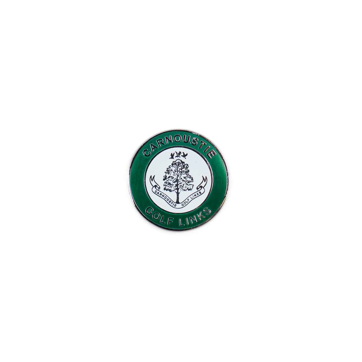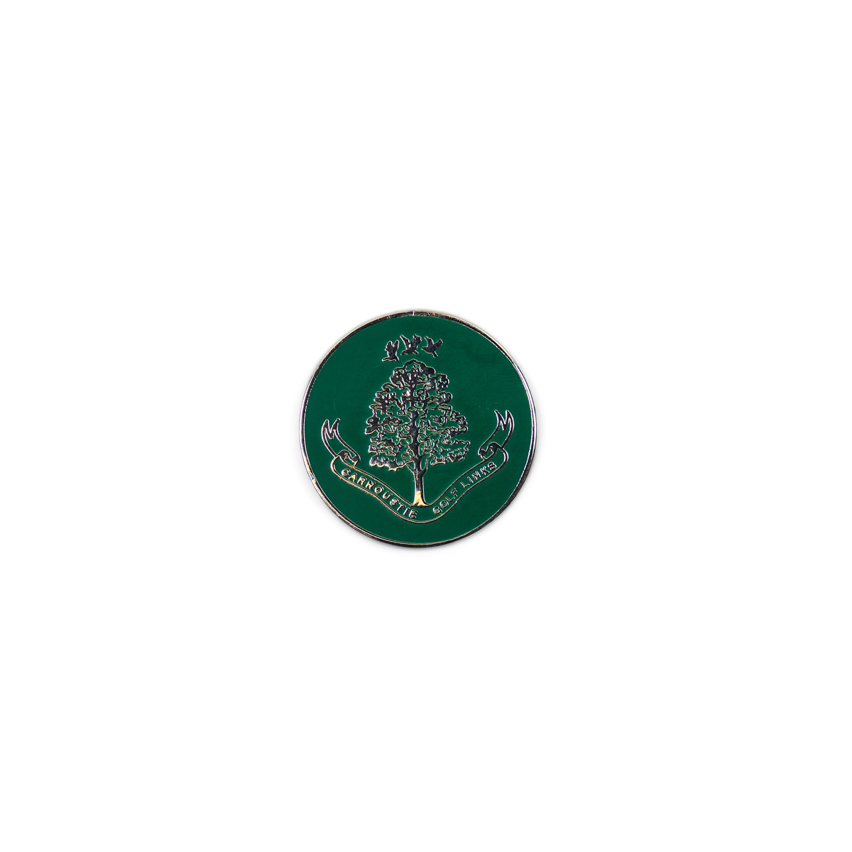 Our AK Golf metal double sided marker is styled with green enamal and features our Carnoustie Golf Links logo on both sides. It is a perfect size for marking your ball on the green and is a great souvenir gift.