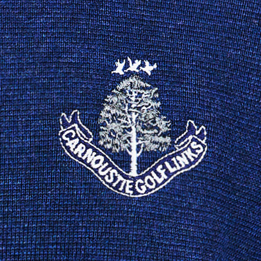 Our men's Ivanhoe full zip windbreaker jacket in steel blue features our Carnoustie Golf Links logo on the left chest. This jacket features grey detailing, drawstring at body bottom and the inner lining provides exceptional warmth, wind resistance and is breathable against the skin. It is made from 100% Merino wool and is extremely soft to touch.