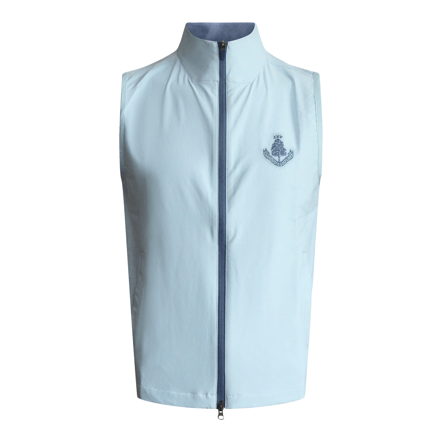 Our Donald Ross Sport full zip vest in neptune. This light weight DWR resistant vest features welted lower front pockets. Made from 89% polyester and 11% spandex