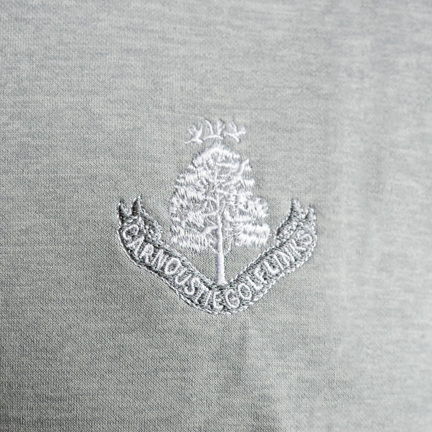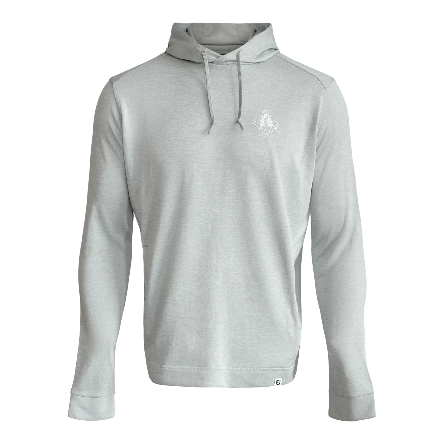 Our men's Footjoy lightweight hoodie in heather grey features our Carnoustie Golf Links logo on the left chest. This performance hoodie offers free range four way stretch. Made from 100% polyester.