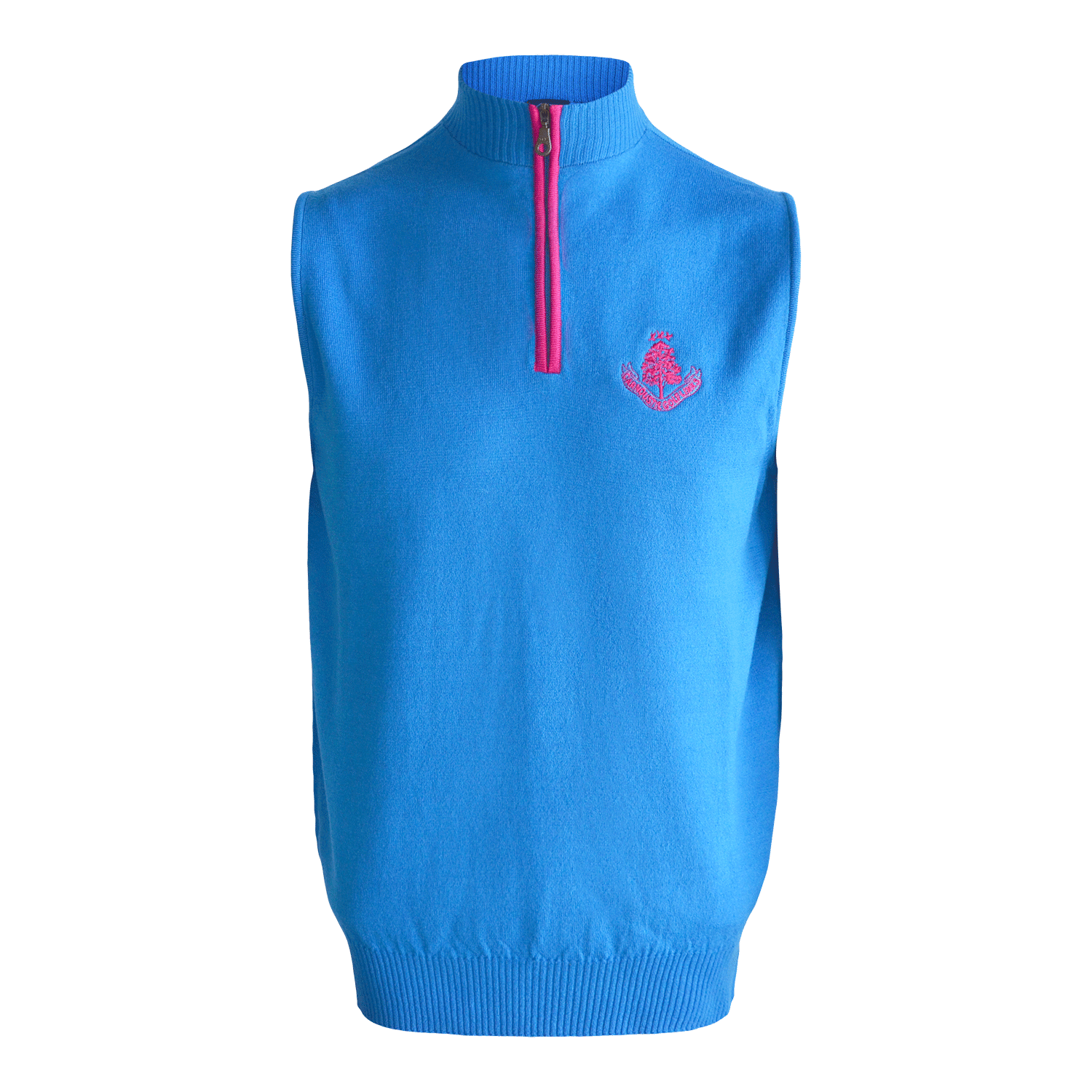 Our men's Glenbrae zip neck slipover in teal with a slate trim features our Carnoustie Golf Links logo on the left chest. This slipover is extremely comfortable yet hard wearing, the merino wool is breathable regulating body temperature, filters UV rays and removes perspiration and moisture from the body. Washing instructions as per Glenbrae website - Turn the jumper inside out to reduce risk of it fluffing up as it will come into contact with other clothes in the washing machine. Wash it with similar colours at 30°C using wool specific detergent and on a wool wash setting if your machine has one. For drying, tumble dry on a warm, gentle heat setting. After tumble drying, you can iron the garment using a warm setting on your iron. If you do not tumble dry then dry the garment laid flat away from direct sunlight but never on a coat hanger as this could pull it out of shape.