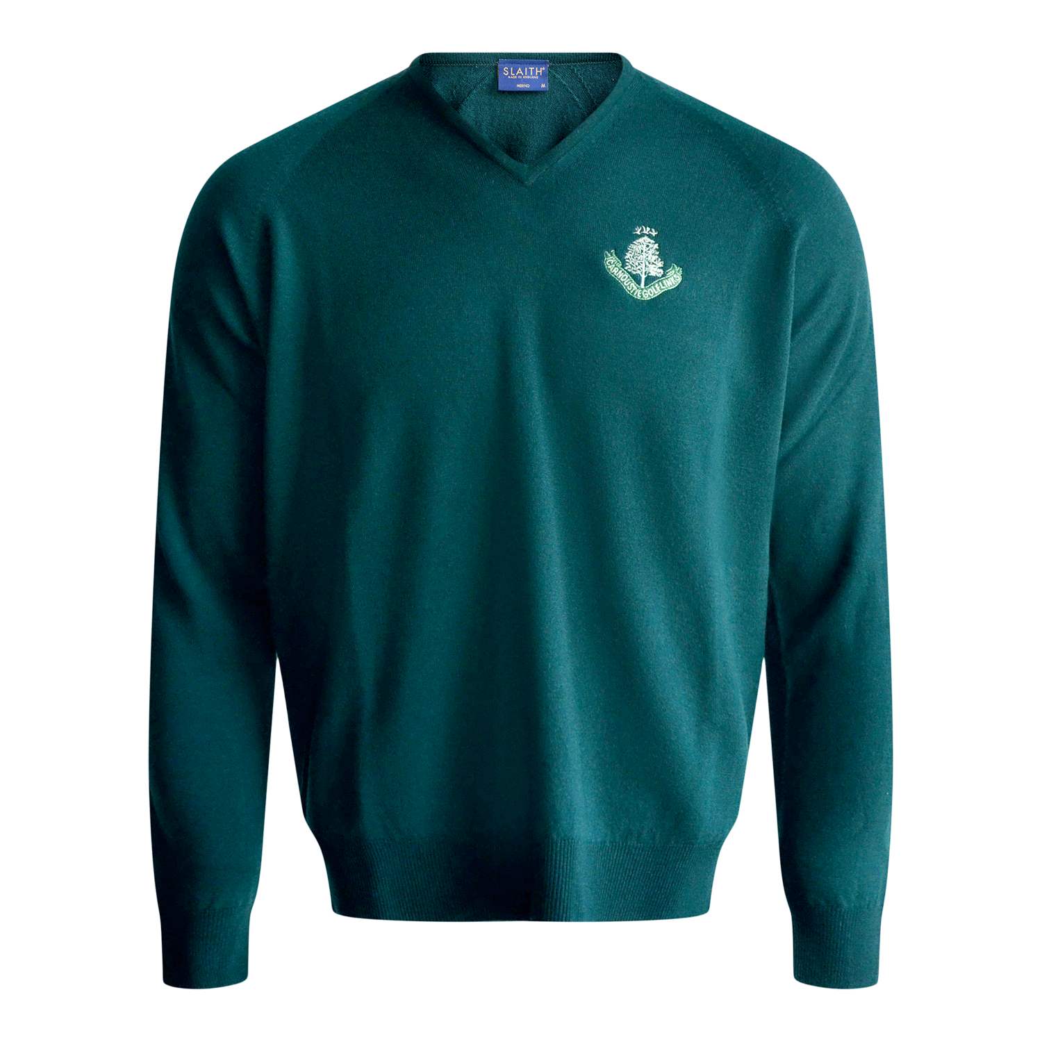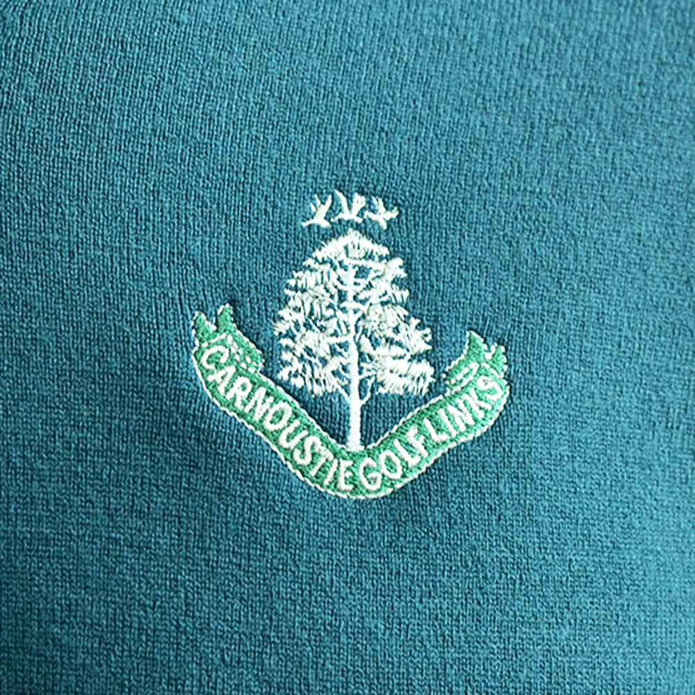 Our men's Glenbrae V neck slipover in tartan green features our Carnoustie Golf Links logo on the left chest. This sweater is extremely comfortable yet hard wearing, the merino wool is breathable regulating body temperature, filters UV rays and removes perspiration and moisture from the body. Washing instructions as per Glenbrae website - Turn the jumper inside out to reduce risk of it fluffing up as it will come into contact with other clothes in the washing machine. Wash it with similar colours at 30°C using wool specific detergent and on a wool wash setting if your machine has one. For drying, tumble dry on a warm, gentle heat setting. After tumble drying, you can iron the garment using a warm setting on your iron. If you do not tumble dry then dry the garment laid flat away from direct sunlight but never on a coat hanger as this could pull it out of shape.