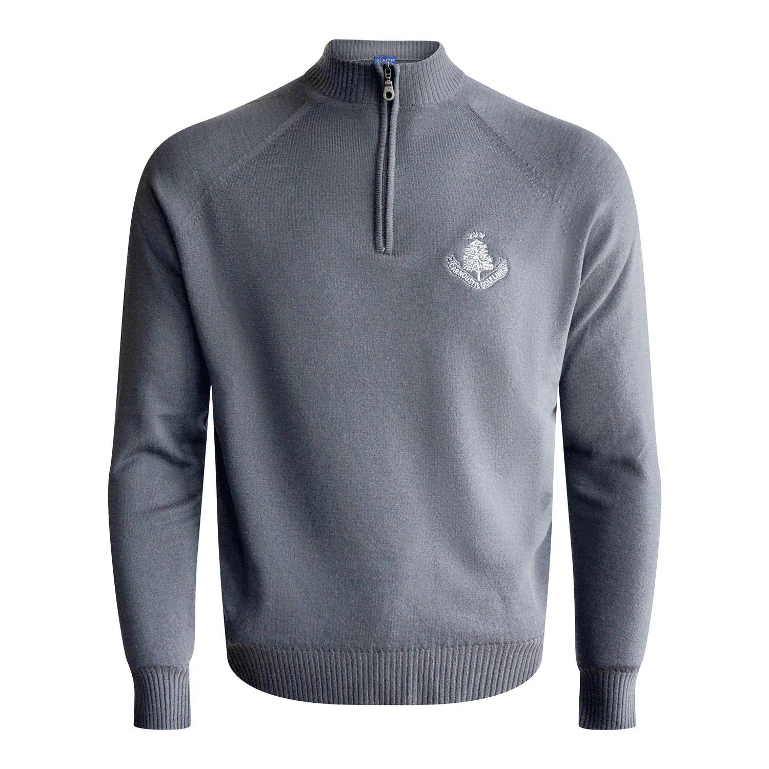 Our Glenbrae zip neck sweater merino wool sweater in gunmetal grey features our Carnoustie Golf Links logo on the left chest. This merino sweater is extremely comfortable yet hard wearing, the merino wool is breathable regulating body temperature, filters UV rays and removes perspiration and moisture from the body. Washing instructions as per Glenbrae website - Turn the jumper inside out to reduce risk of it fluffing up as it will come into contact with other clothes in the washing machine. Wash it with similar colours at 30°C using wool specific detergent and on a wool wash setting if your machine has one. For drying, tumble dry on a warm, gentle heat setting. After tumble drying, you can iron the garment using a warm setting on your iron. If you do not tumble dry then dry the garment laid flat away from direct sunlight but never on a coat hanger as this could pull it out of shape.