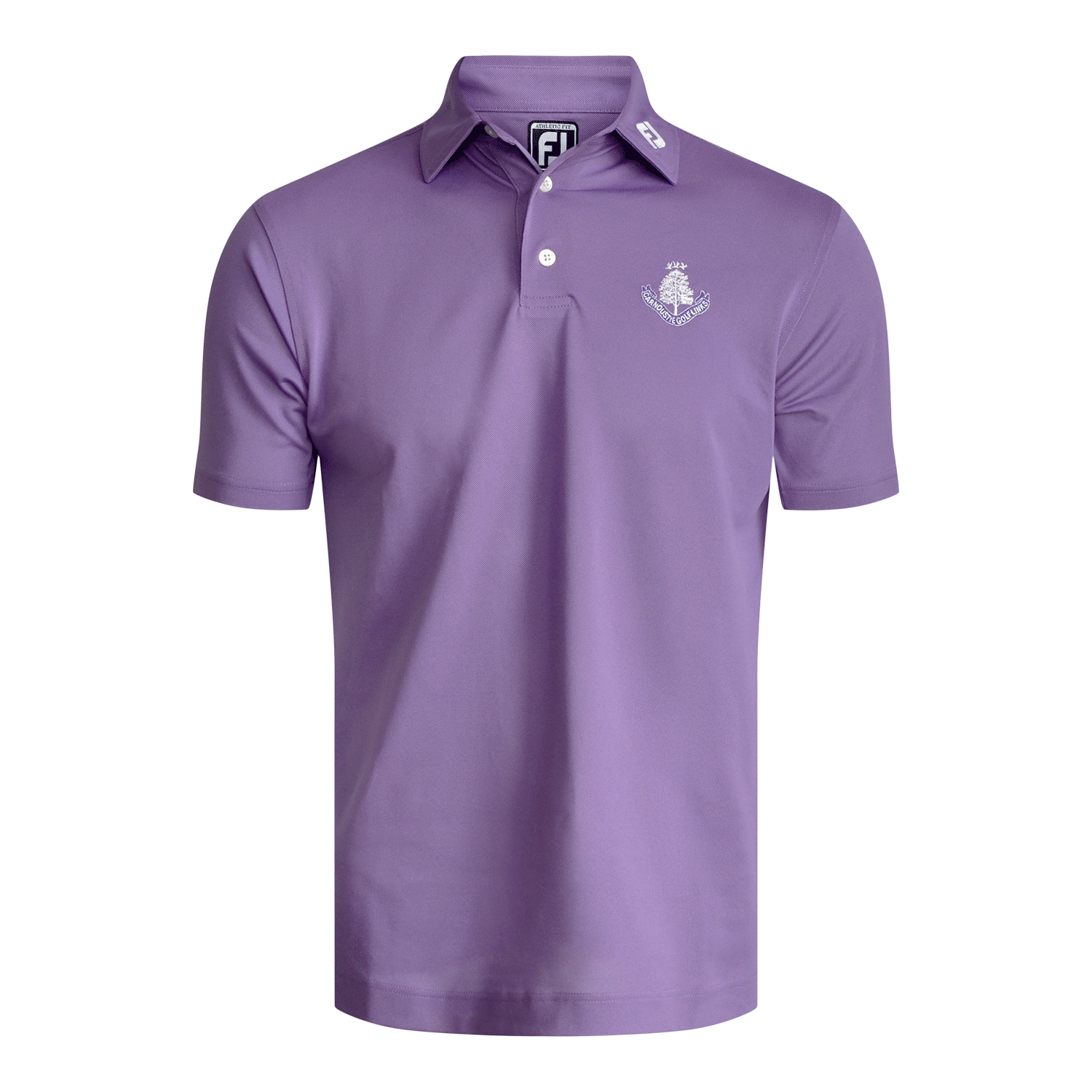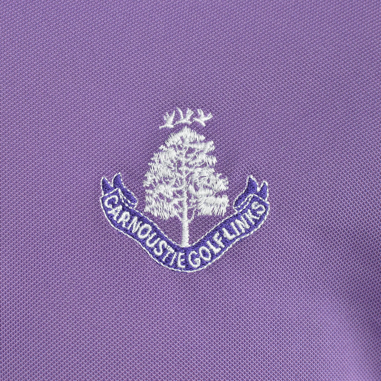 Our men's Footjoy plain polo shirt in purple features our Carnoustie Golf Links logo on the left chest. This performance polo is made from ProDry fabric that features moisture wicking, UV protection and easy care keeping you cool on and off the course. Made from 88% polyester and 12% spandex.