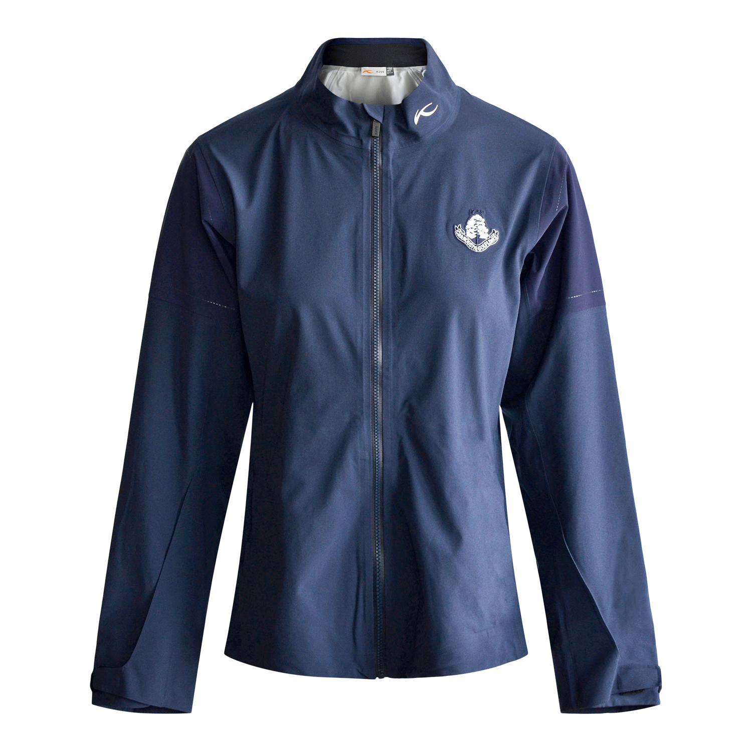Our womens Kjus full zip waterproof jacket in steel grey features our Carnoustie Golf Links logo on the left chest. This Pro 3L fully waterproof jacket has a revolutionary stretchable fabric which uses body-zoned X-stretch panels to deliver maximum stretch. It is also designed with a Dermizax membrane with three layers and is fully seam sealed with water repellant zips and is extremely breathable. Shell one is made from 100% polyamide and shell two 85% polyamide and 15% elastane.