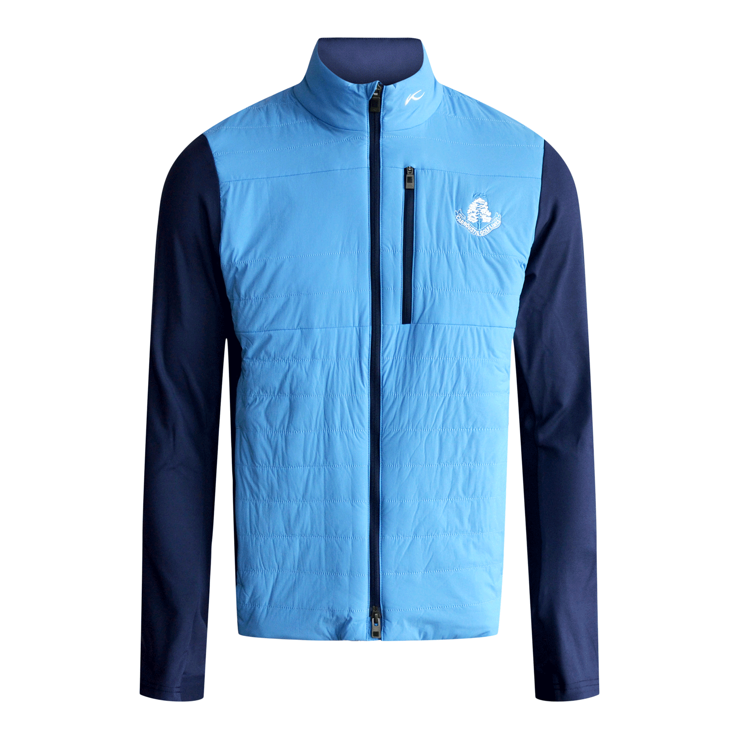 Our men's Kjus reach jacket in cerulean & atlanta blue features our Carnoustie Golf Links logo on the left chest. This jacket has a lightweight quilted insulation and a thermogulating graphene lining. Made from 90% polyamine and 10% elastane. Insulation made from 100% polyester.