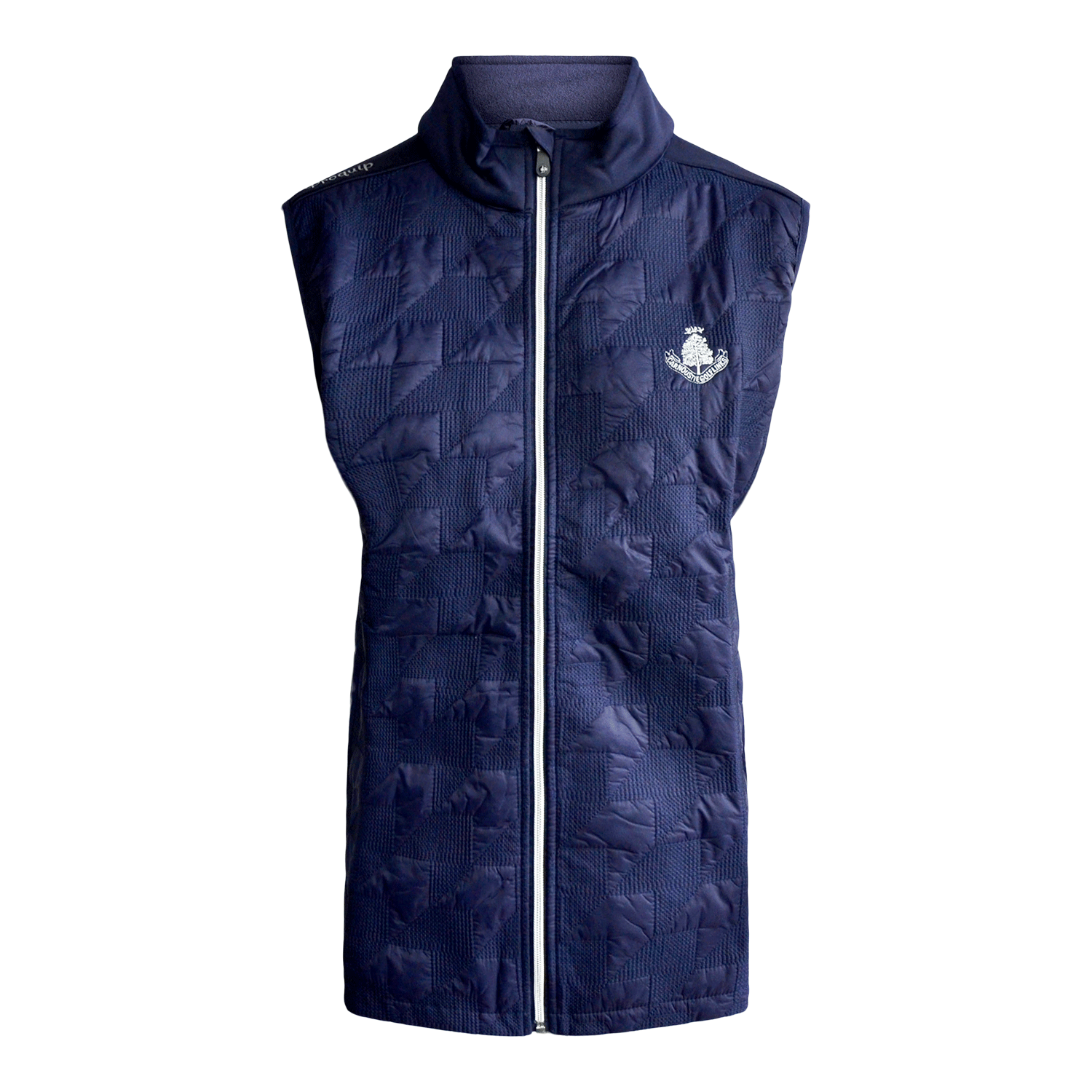 Our women's Proquip full zip quilted therma jacket in black features our Carnoustie Golf Links logo on the left chest. This jacket includes pink detailing and an arrowhead pattern on the body, this jacket is also windproof and has thermal fleece lining providing warmth on the course.